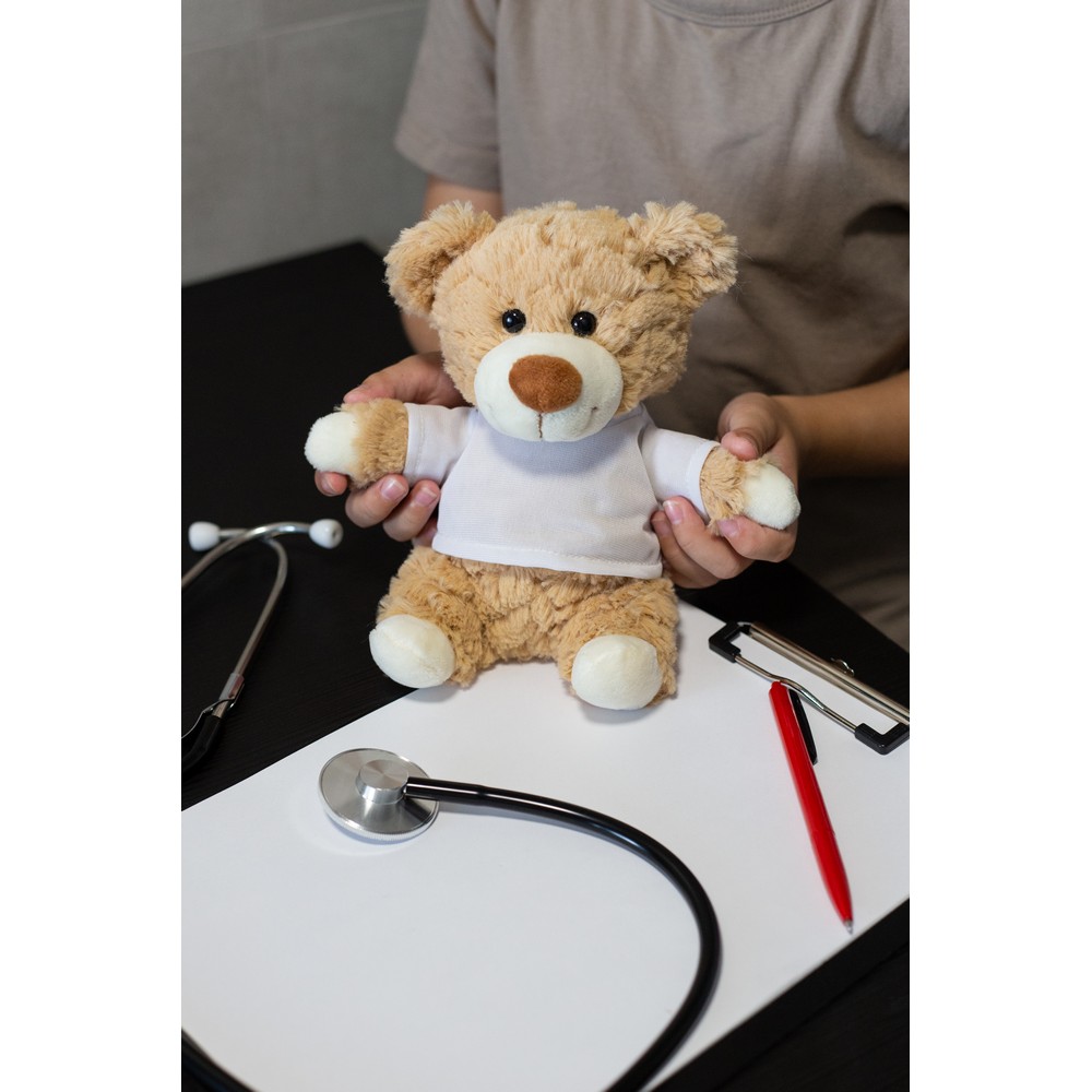 Beżowy miś z białą koszulką pod nadruk (nieoznakowana koszulka pakowana oddzielnie)