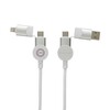 Szybki kabel do ładowania z 5 końcówkami: USB, 2x typu C i 2 w 1, micro USB, iOS, moc maksymalna ładowania USB C do USB C 45W, USB C do iOS 18W, obudowa wykonana z TPE i PET pochodzących z recyklingu, posiadają certyfikat RCS (Recycled Claim Standard), który jest stosowany gdy produkt jest wykonany częściowo lub w całości z materiałów pochodzących z recyklingu, długość 120 cm, nie zawiera PVC, ślad węglowy produktu: 0,36 kg CO2
