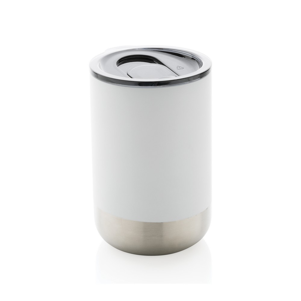 Kubek termiczny 360 ml, podwójne ścianki z próżnią pomiędzy, utrzymuje temperaturę napojów ciepłych do 3 godzin oraz zimnych do 6 godzin, wieczko zapobiegające rozlewaniu, wykonany ze stali nierdzewnej z recyklingu z certyfikatem RCS (Recycled Claim Standard) który gwarantuje, że wykorzystane materiały pochodzą z recyklingu, całkowita zawartość materiału z recyklingu obliczona w oparciu o wagę całkowitą przedmiotu: 83%, w pudełku z papieru kraftowego z certyfikatem FSC® (Forest Stewardship Council), ślad węglowy produktu: 1,01 kg CO2