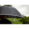 Parasol automatyczny z białymi elementami, 8 paneli z białą lamówką, piankowa rączka, biały przycisk, metalowa rama w białym kolorze, białe żebrowanie z włókna szklanego, zapięcie na rzep