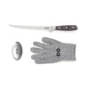 Zestaw do filetowania ryb, nóż do filetowania, rękawiczka z siatki stalowej, metalowe mydło, które usuwa zapach ryb i czosnku, wykonane ze stali nierdzewnej, uchwyt z drewna pakka, w pudełku upominkowym
